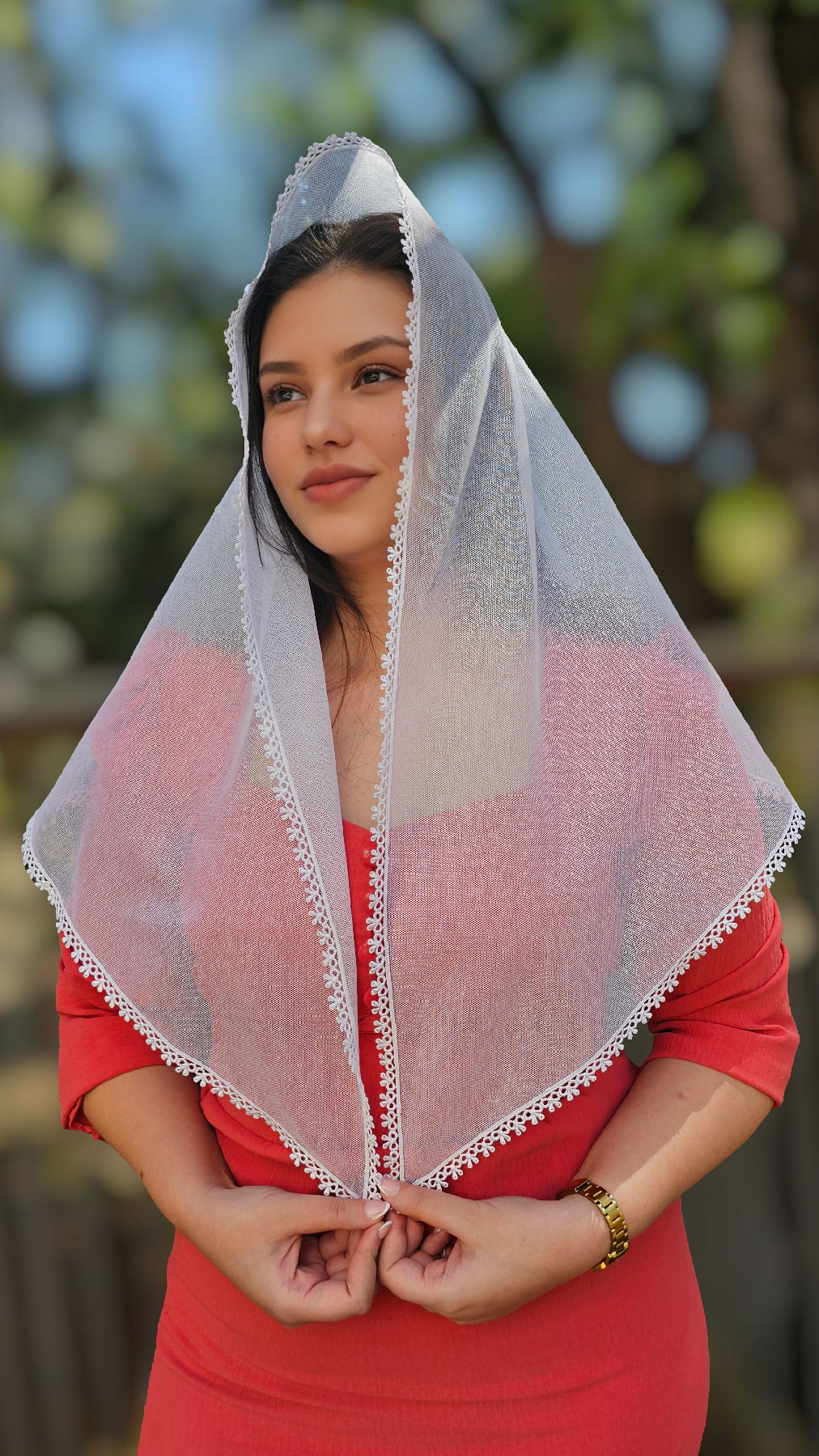 - Véu com aproximadamente: 150X50 cm
