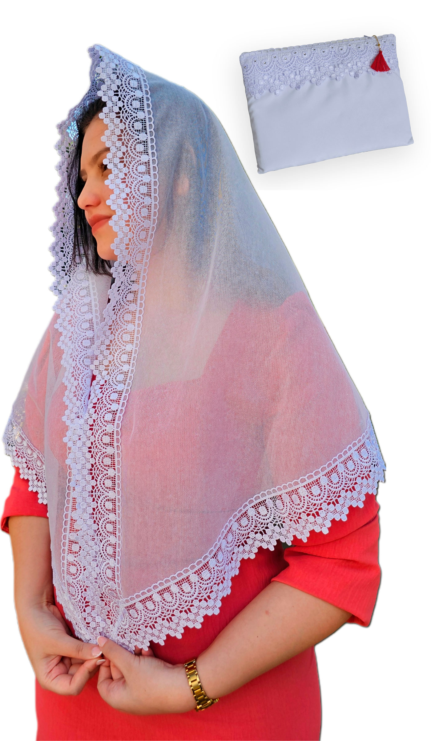 RETANGULAR = Também conhecido como Véu Quadrado, é o formato mais tradicional, o primeiro a existir, muito antes do Bico/Oval. Muitas irmãs ainda preferem esse formato. Ele é literalmente um retângulo, com a frente e costas retas, e com 4 bicos. Para quem prefere usar véus maiores, a grande vantagem do véu retangular é ser maior que o véu Bico/Oval. E talvez a maior desvantagem é por não serem anatômicos, as vezes costumam “embolar” no pescoço.
