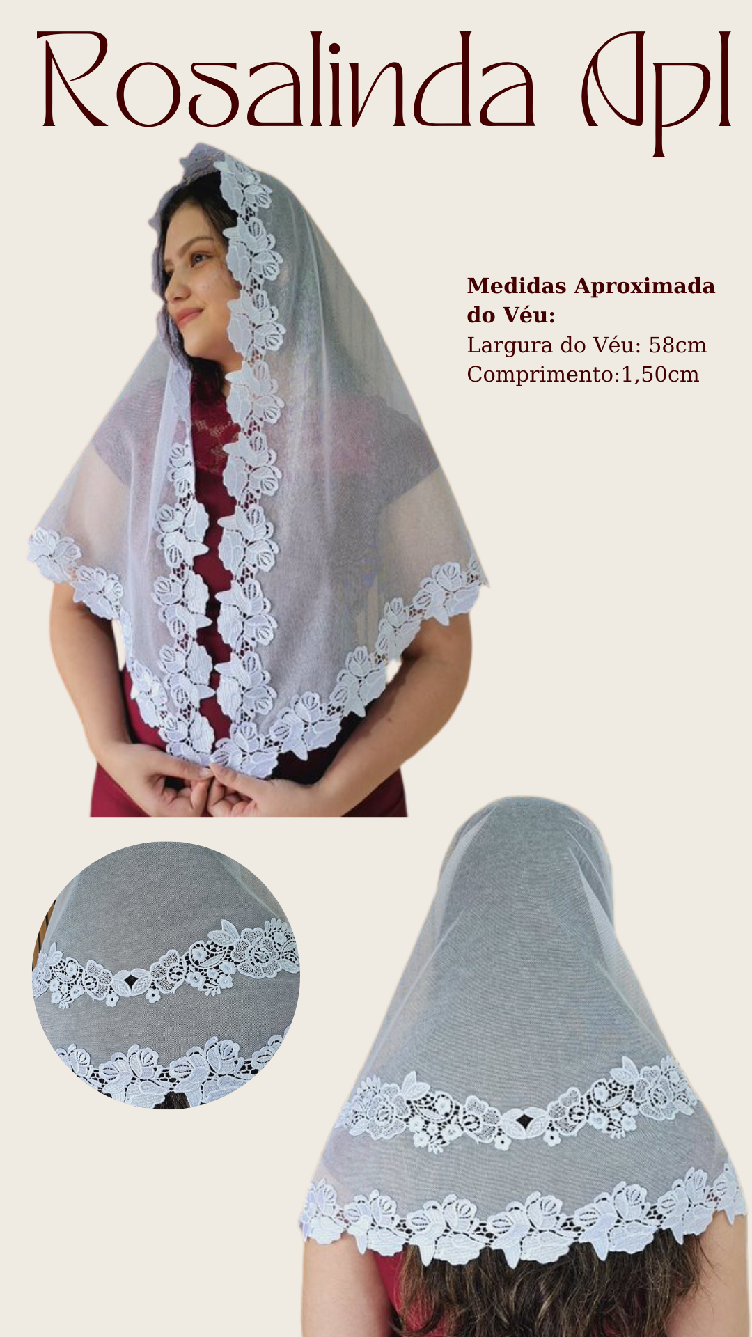- Véu com aproximadamente: 150X58 cm